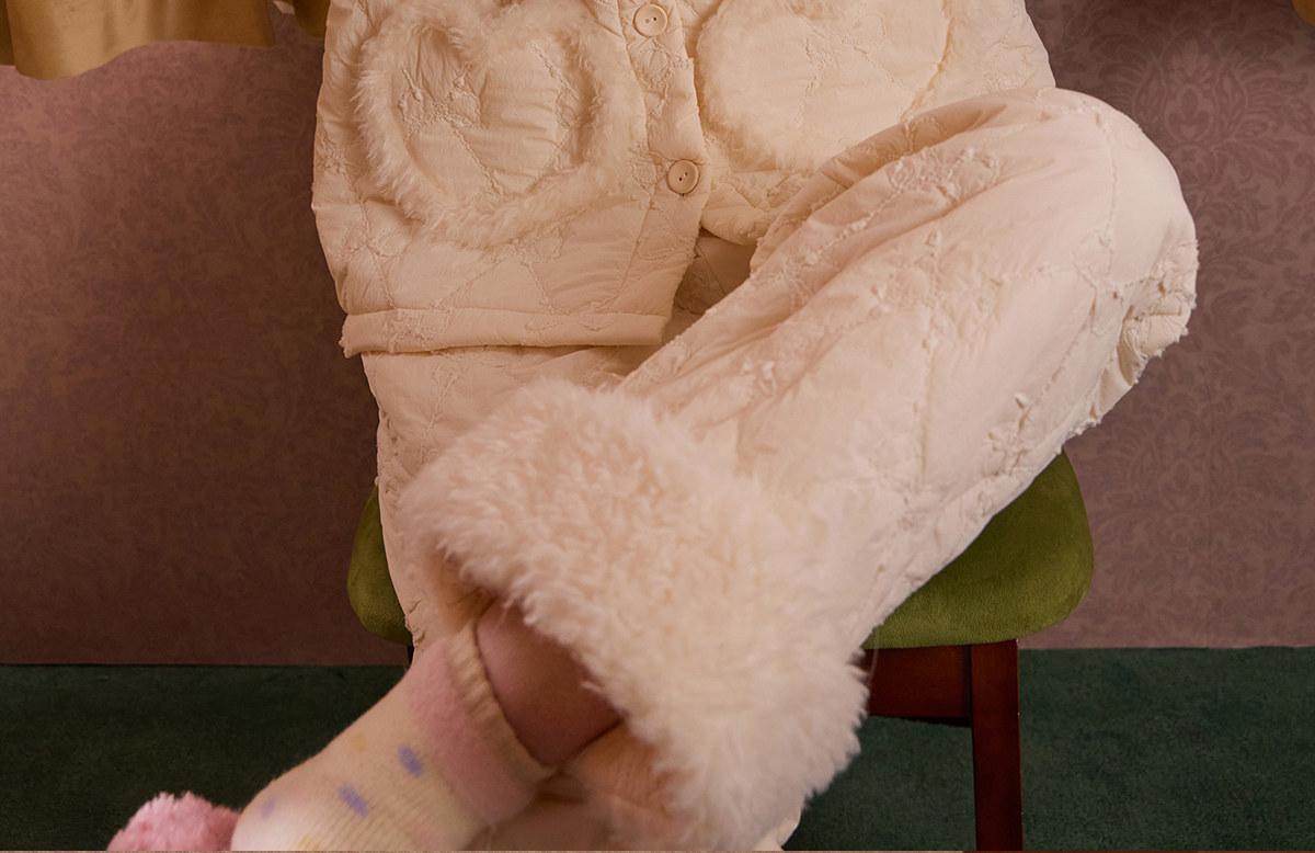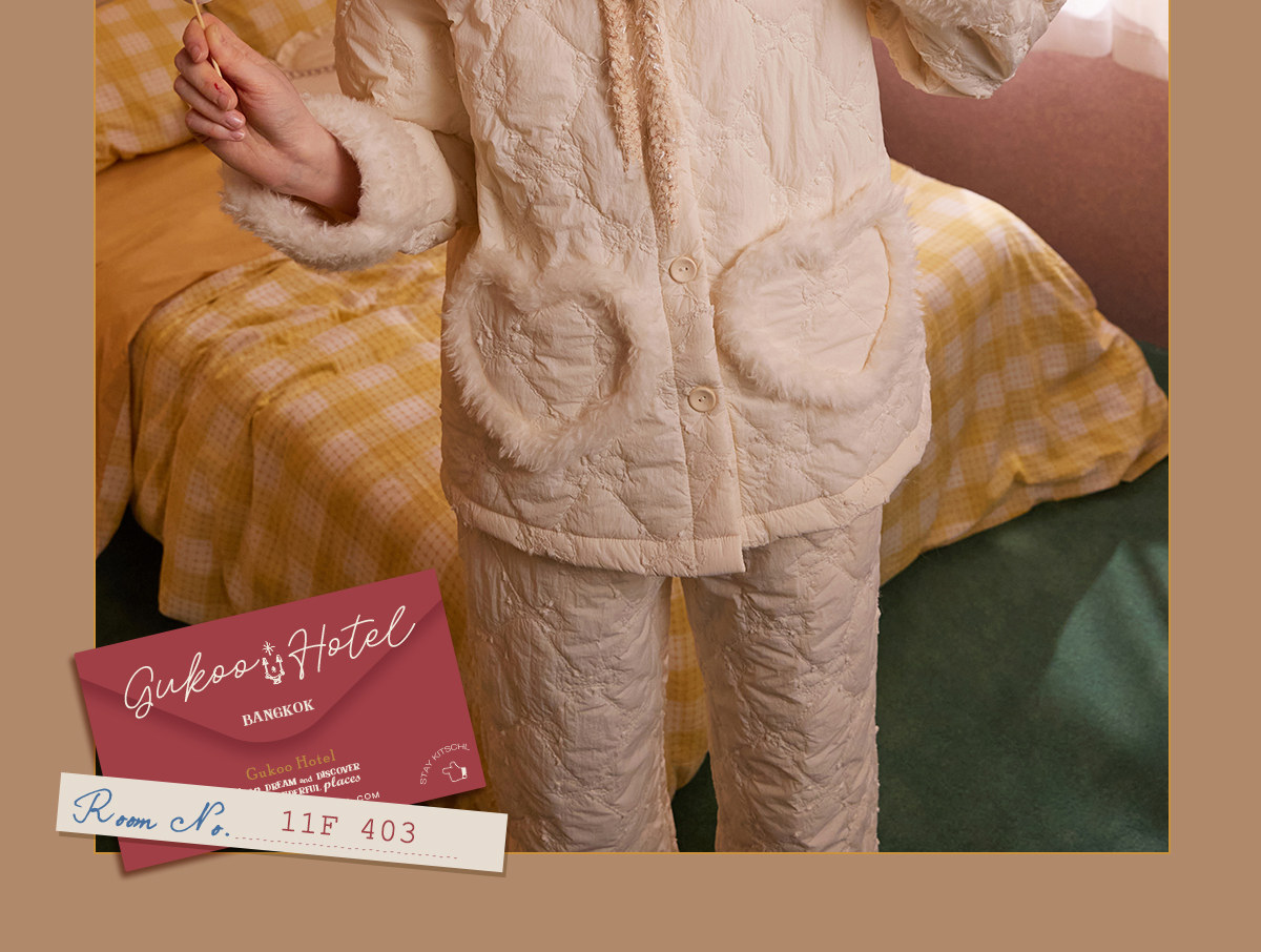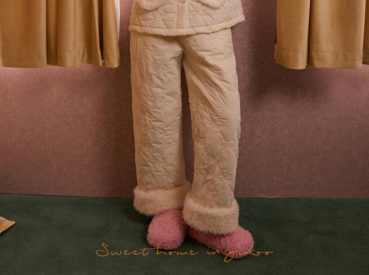 Gukoo/果壳睡衣女冬季奶油泡芙夹棉保暖新款简约女士家居服套装