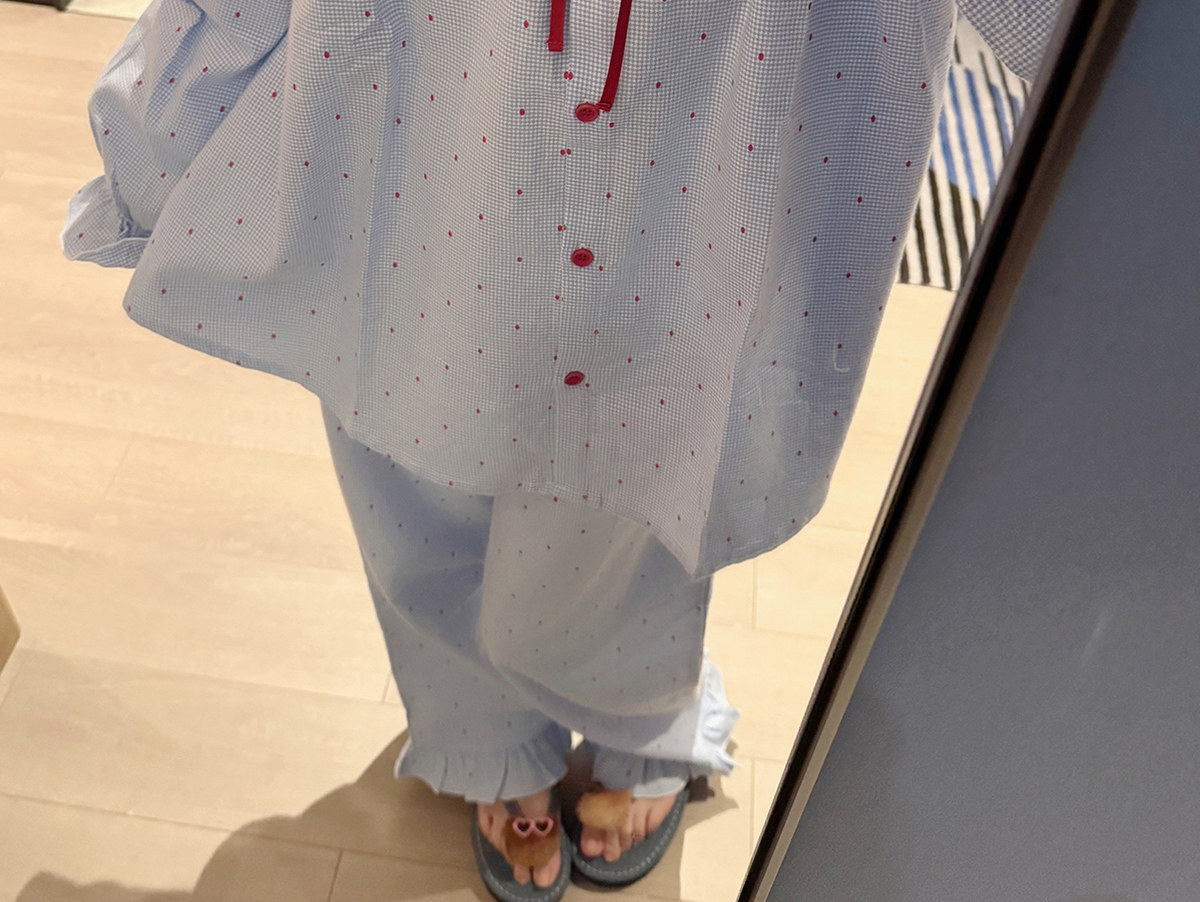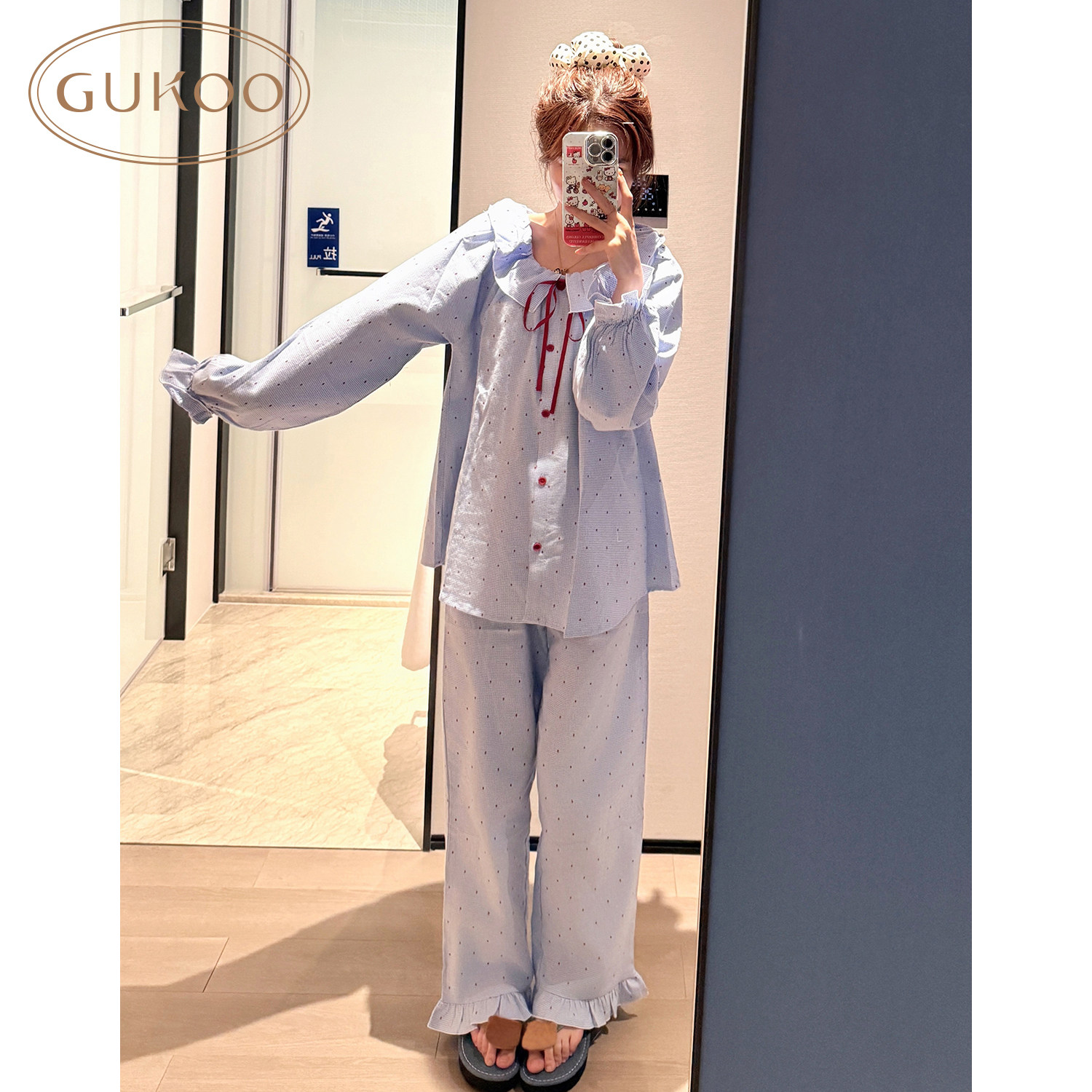 Gukoo/果壳睡衣蓝色波点家居服套装