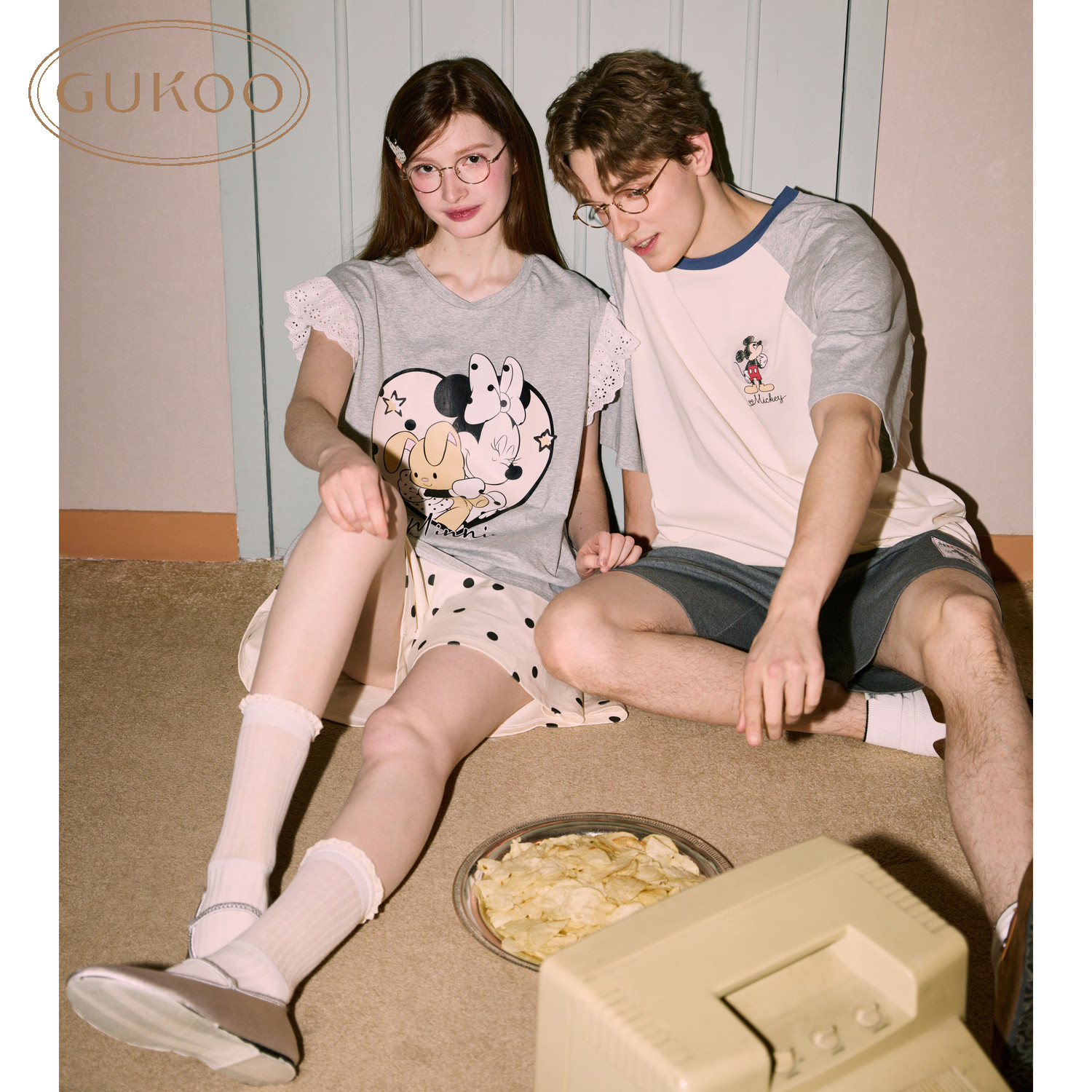 首页> 睡衣> 夏季短款> Gukoo/果壳情侣睡衣夏季迪士尼联名新款宽松纯棉男情侣家居服套装