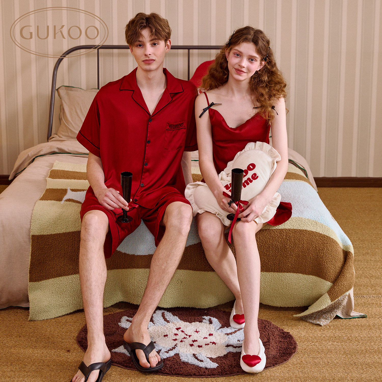 - Gukoo/果壳睡衣女红色格子米奇米妮新款简约女士家居服套装