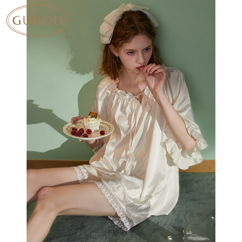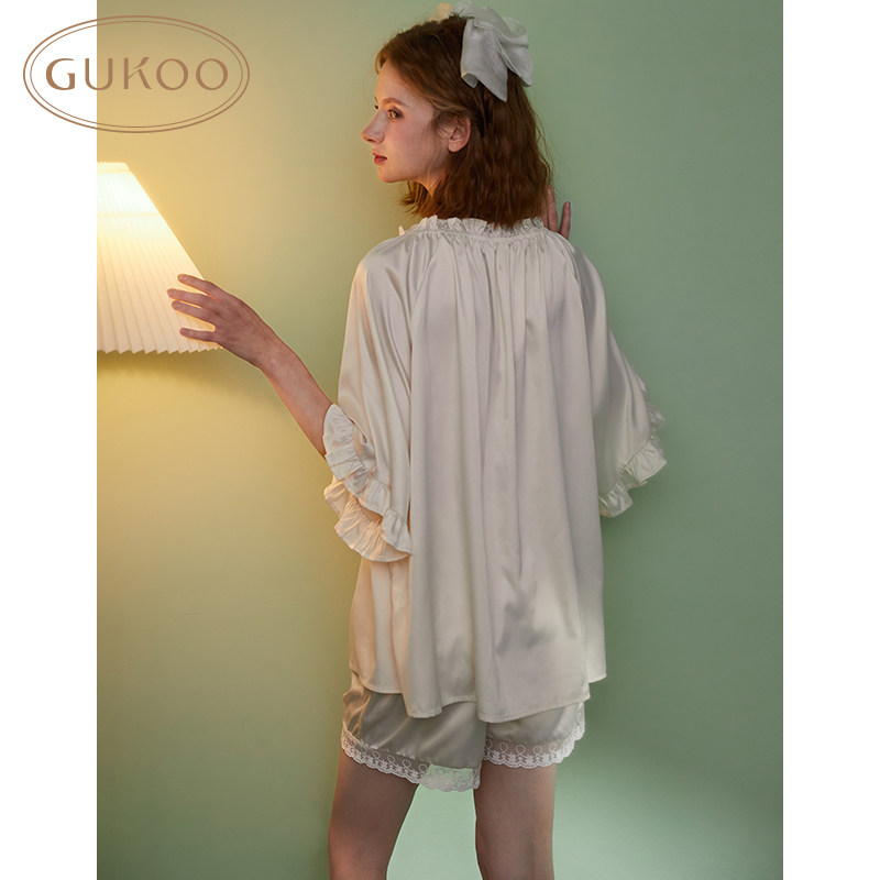 - Gukoo/果壳睡衣女冬季奶油泡芙夹棉保暖新款简约女士家居服套装