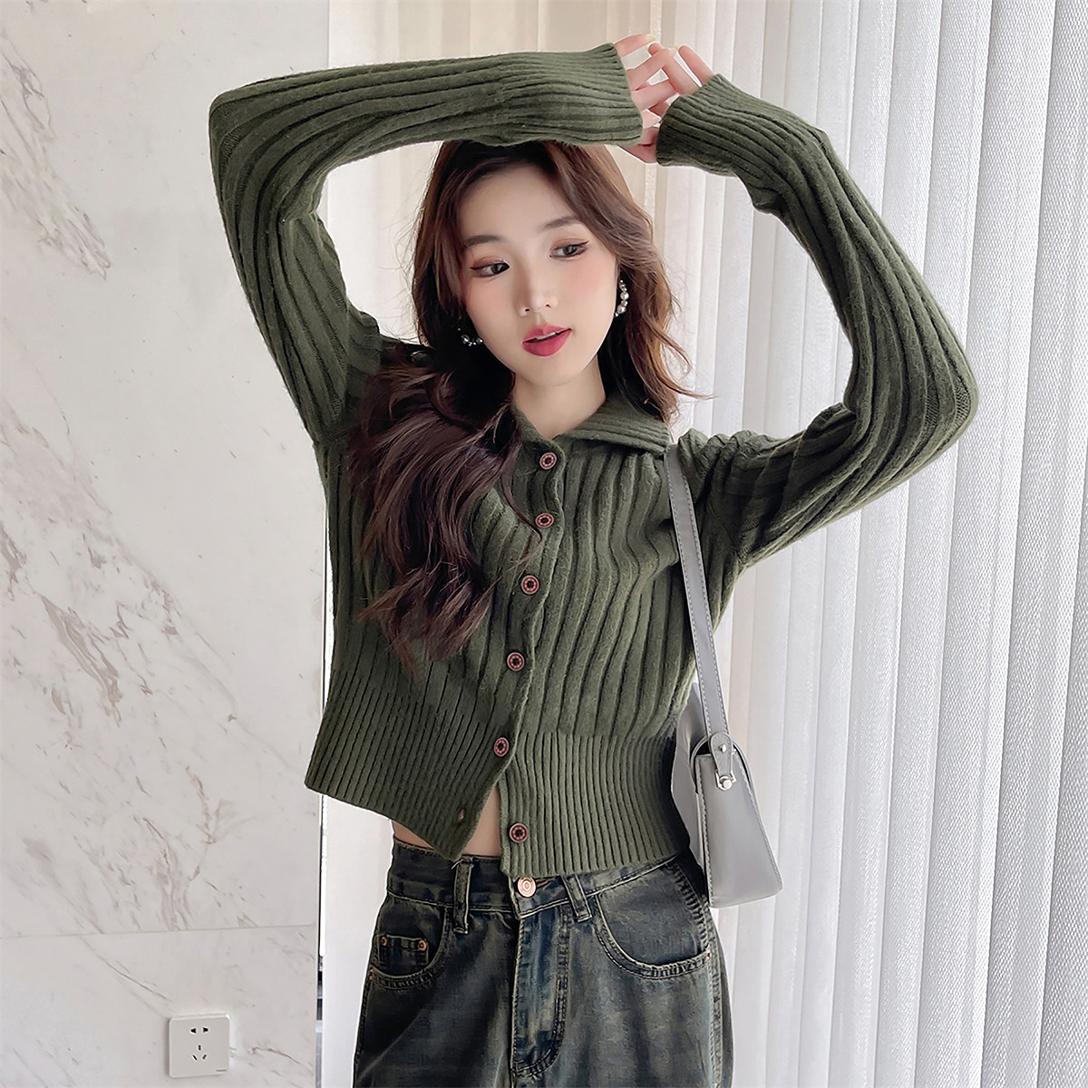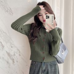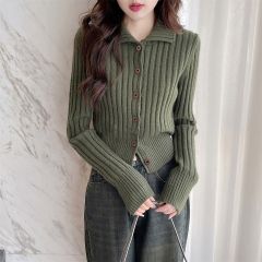 唐狮秋冬季显瘦翻领小开衫女针织外套春秋高级感时尚显瘦上衣女