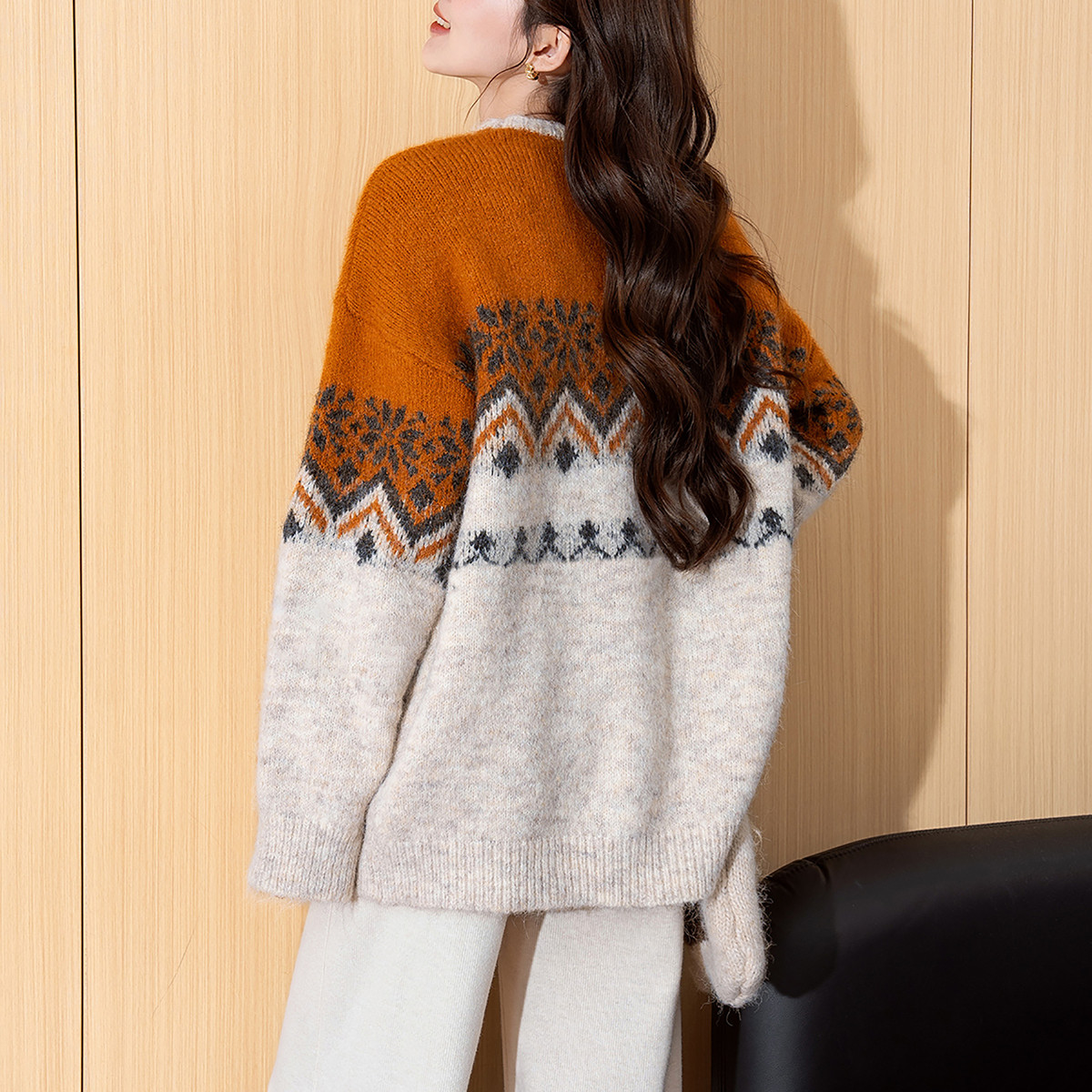 唐狮春秋季毛衣女费尔岛风气质显瘦圆领套头针织衫高级时尚上衣