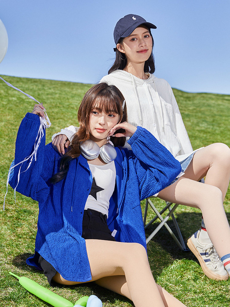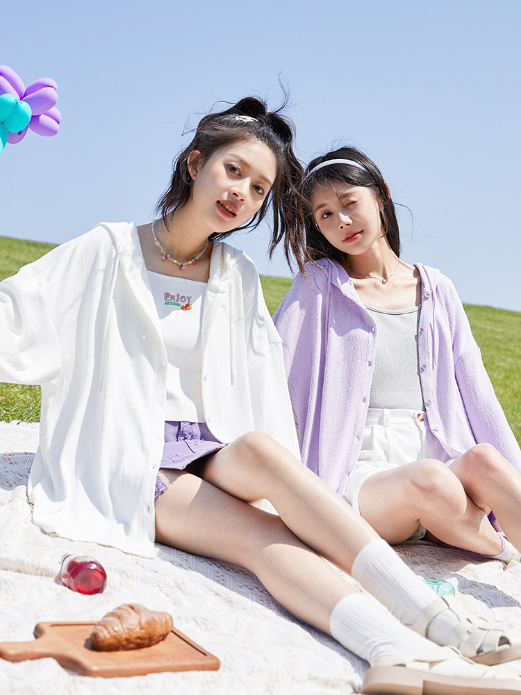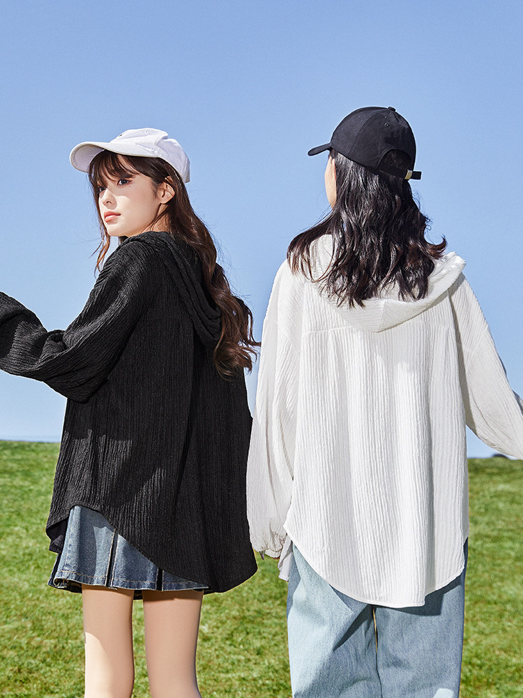 唐狮夏季女款新款空调衫开衫白色长袖连帽罩衫透气薄外套潮
