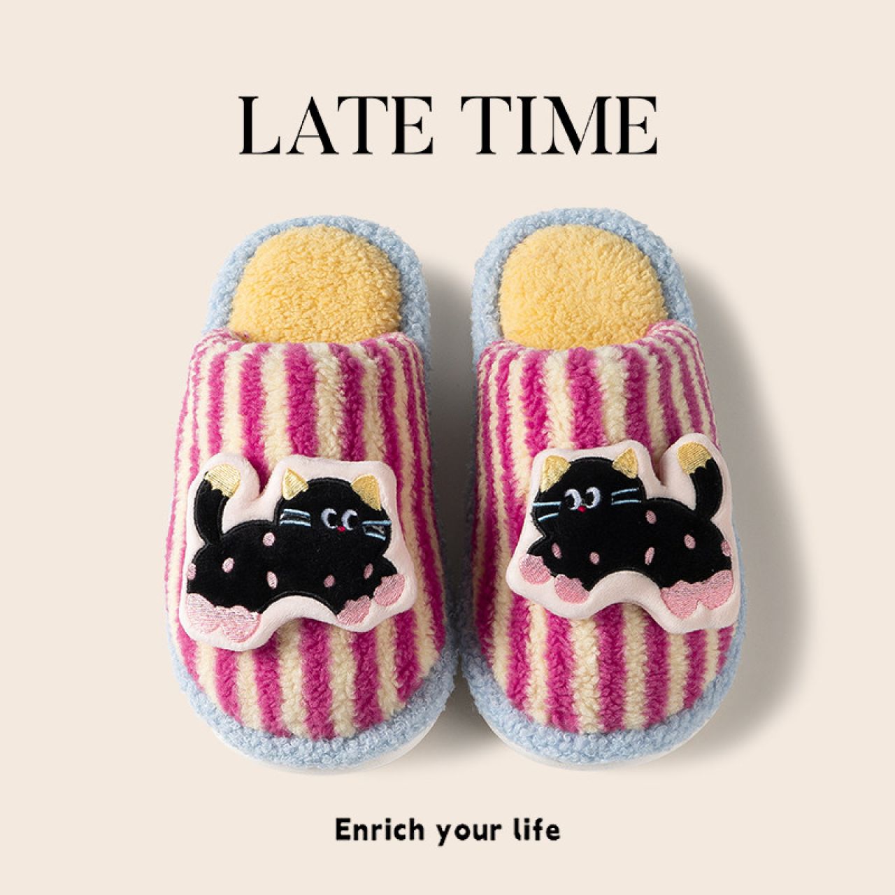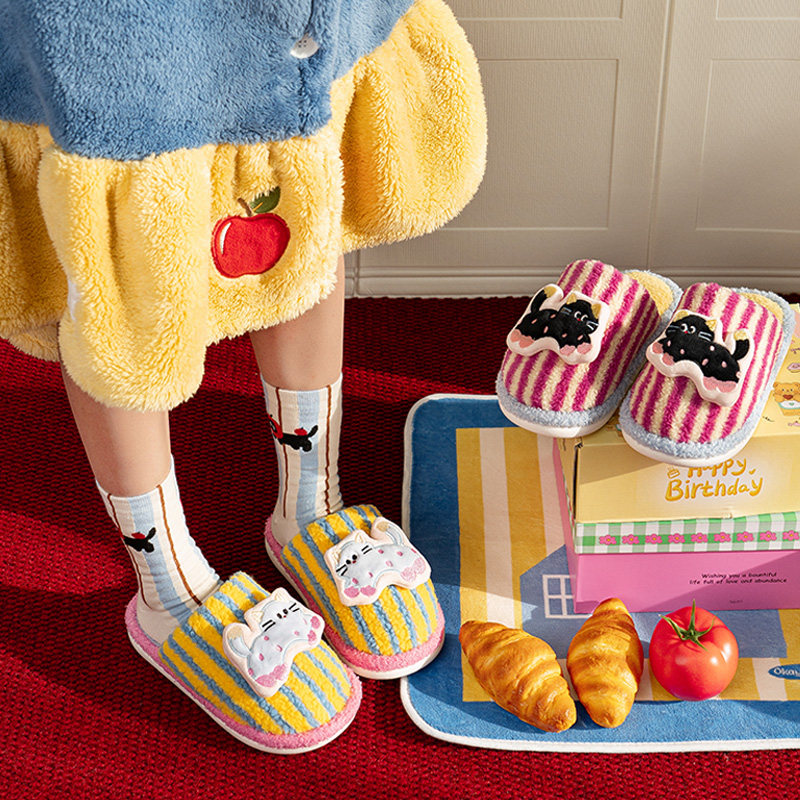 可爱少女心立体小猫棉拖鞋女秋冬2025新款室内家居情侣毛毛拖鞋