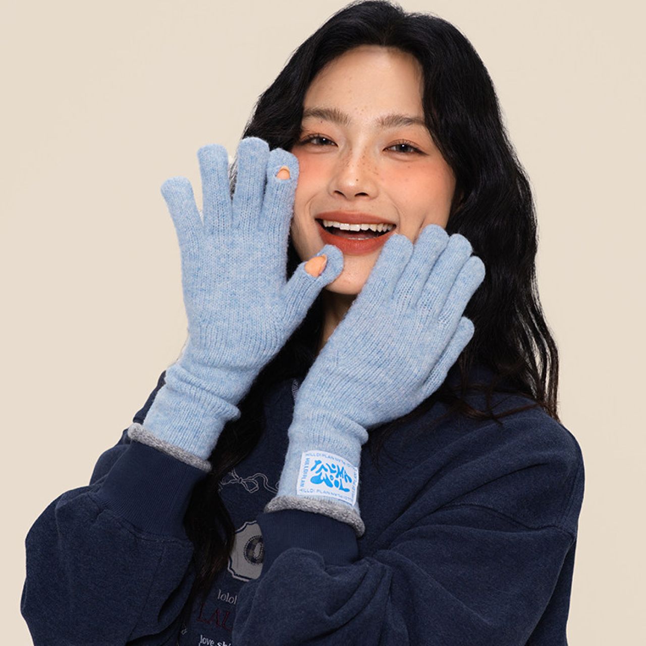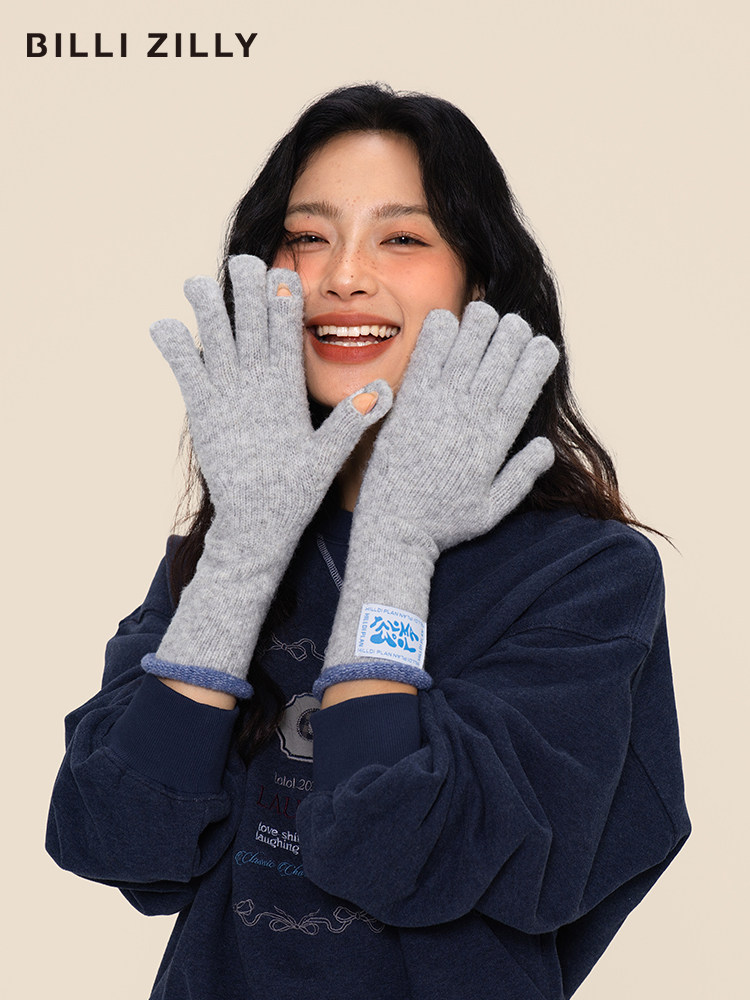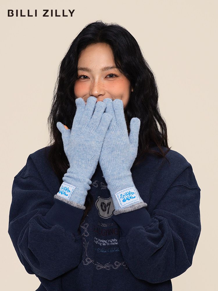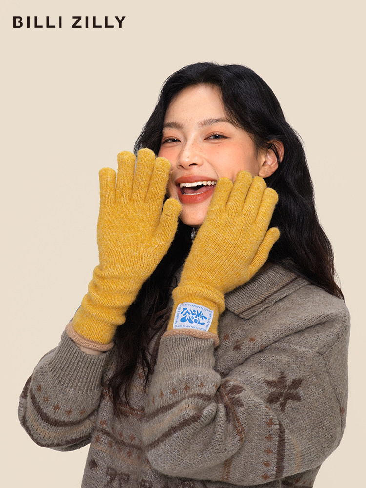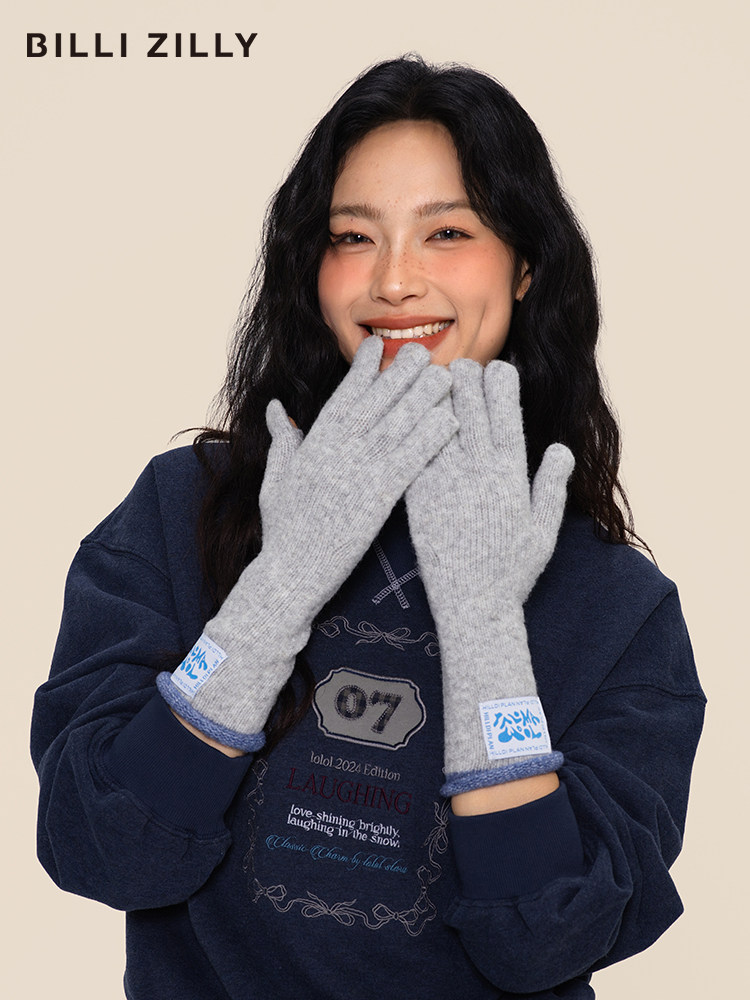 韩系含羊毛针织手套女秋冬季加厚长款可触屏分指手套骑行保暖护手