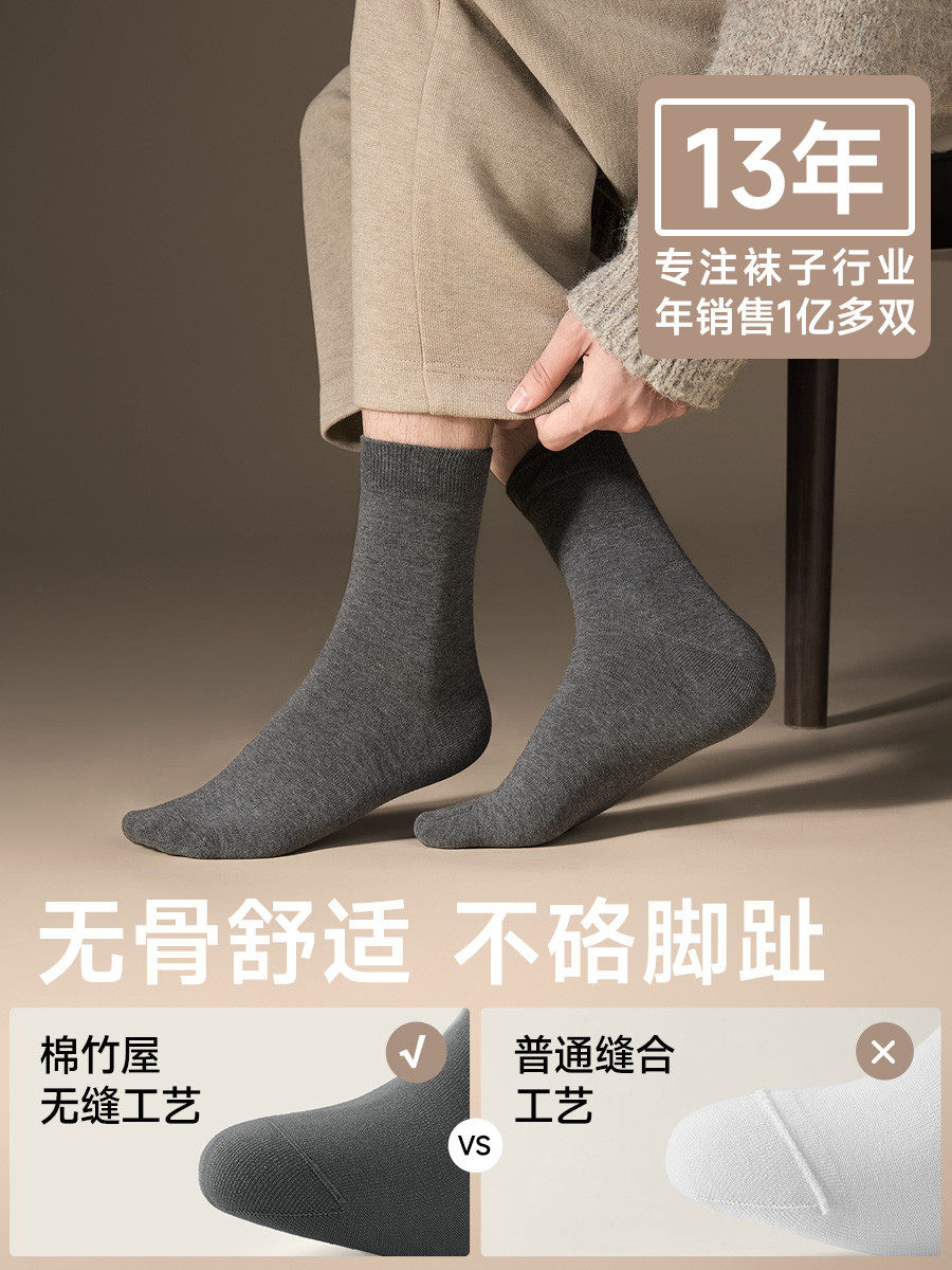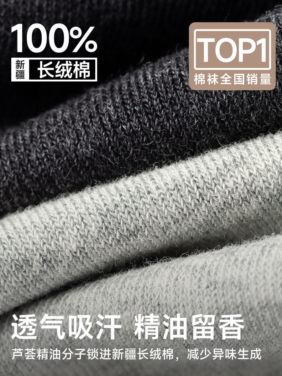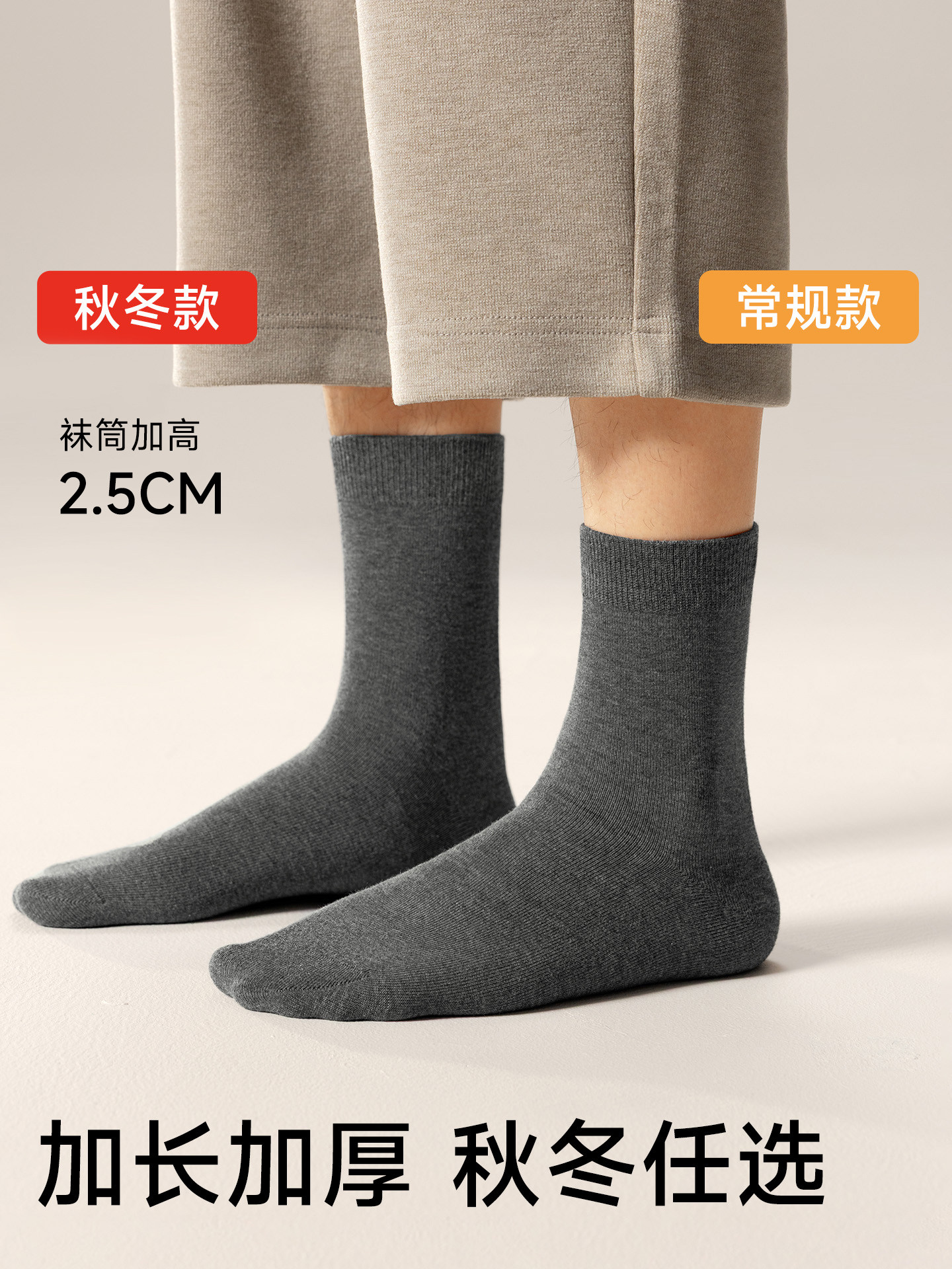 袜子男士纯棉防臭商务中筒袜秋冬季吸汗芦荟全棉袜休闲黑色长筒袜