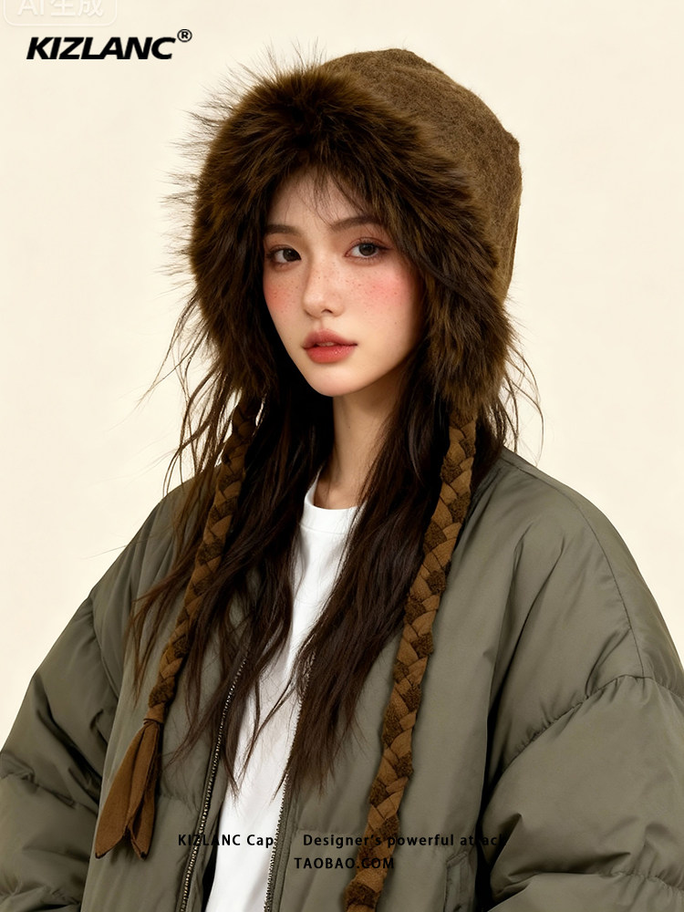 帽子女秋冬款加厚保暖毛线帽防寒护耳显脸小包头帽套头帽