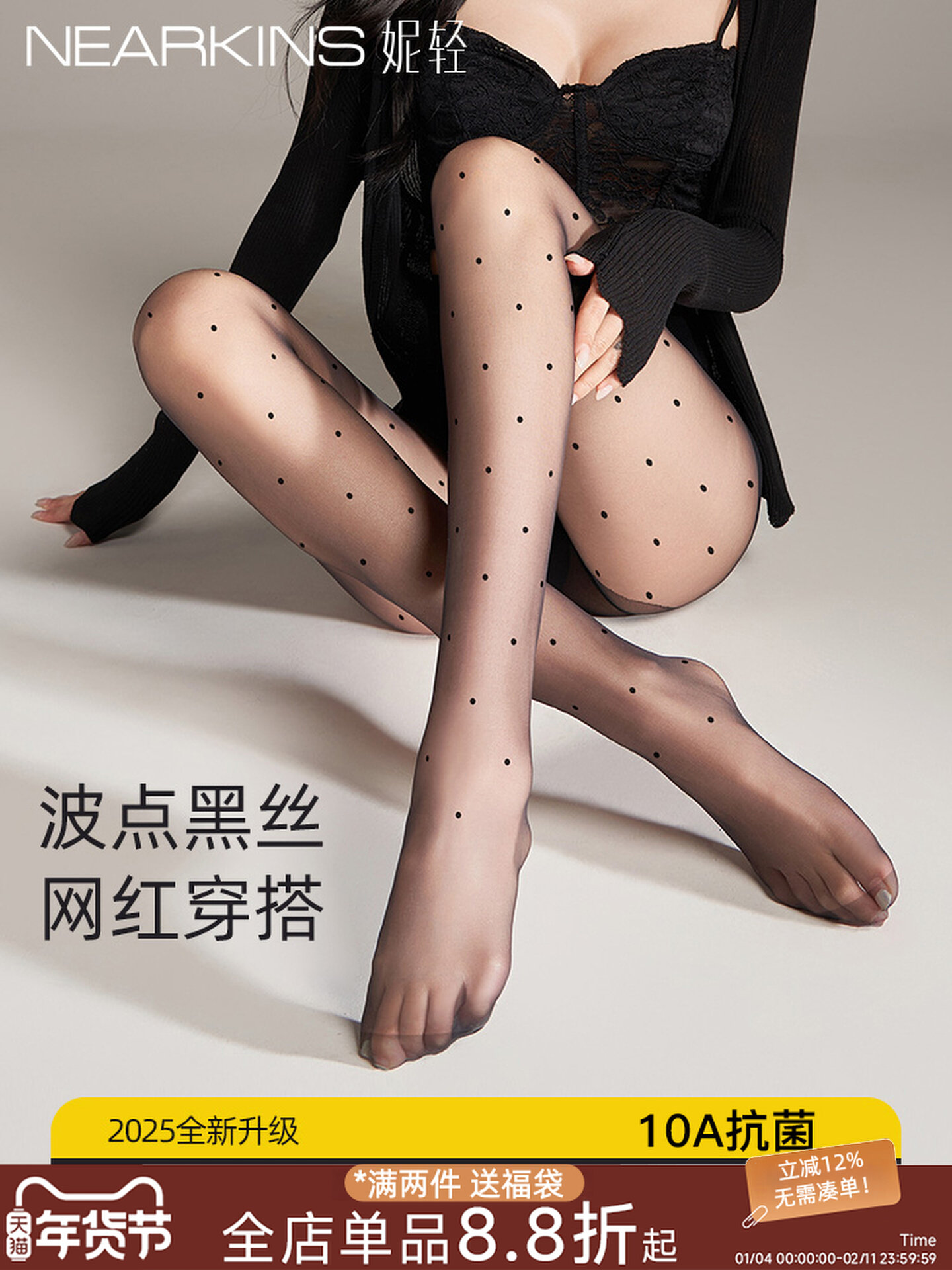 波点黑丝袜女0d春秋超薄款防勾丝性感黑色光腿神器夏季打底连裤袜