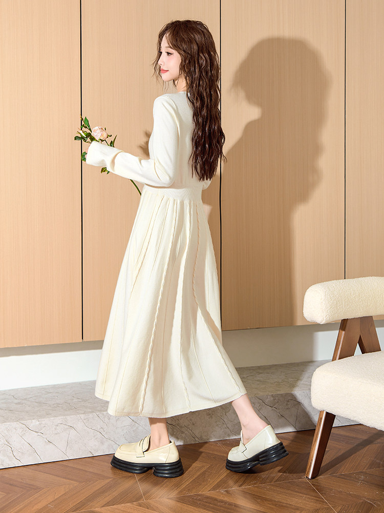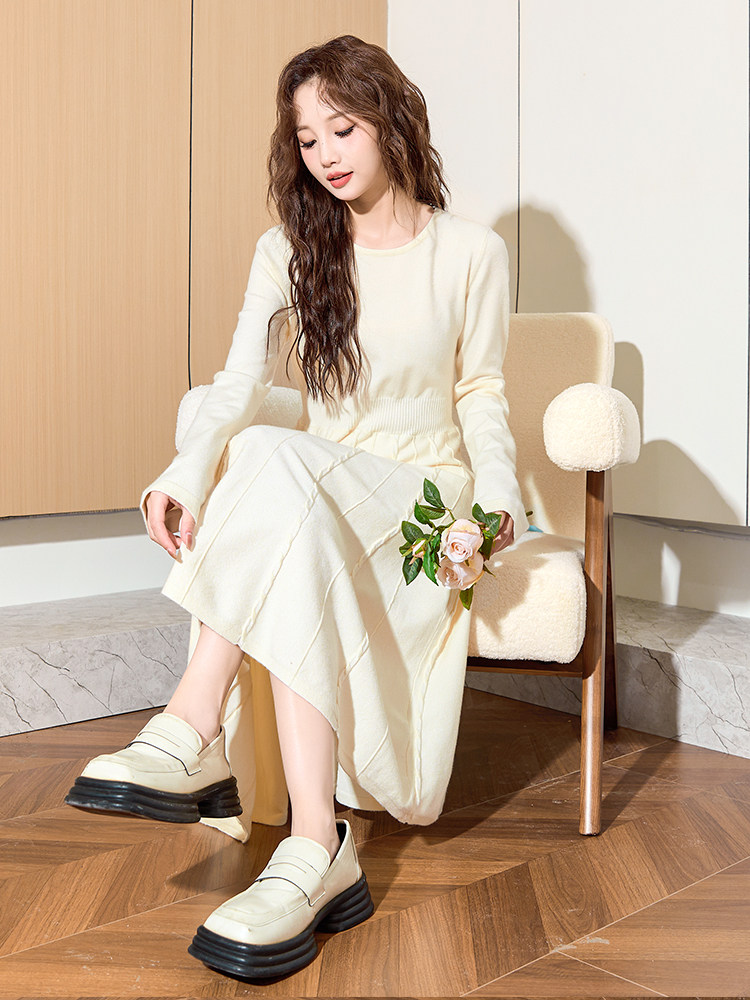 首页> 裙子> 连衣裙> 唐狮冬季白色长袖针织连衣裙秋冬款女长款毛衣裙内搭打底裙配大衣